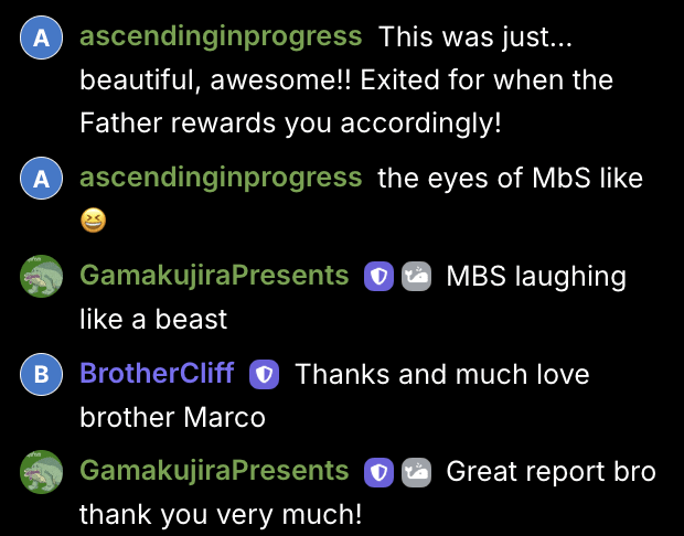 Love you back. Thanks for the fellowship.